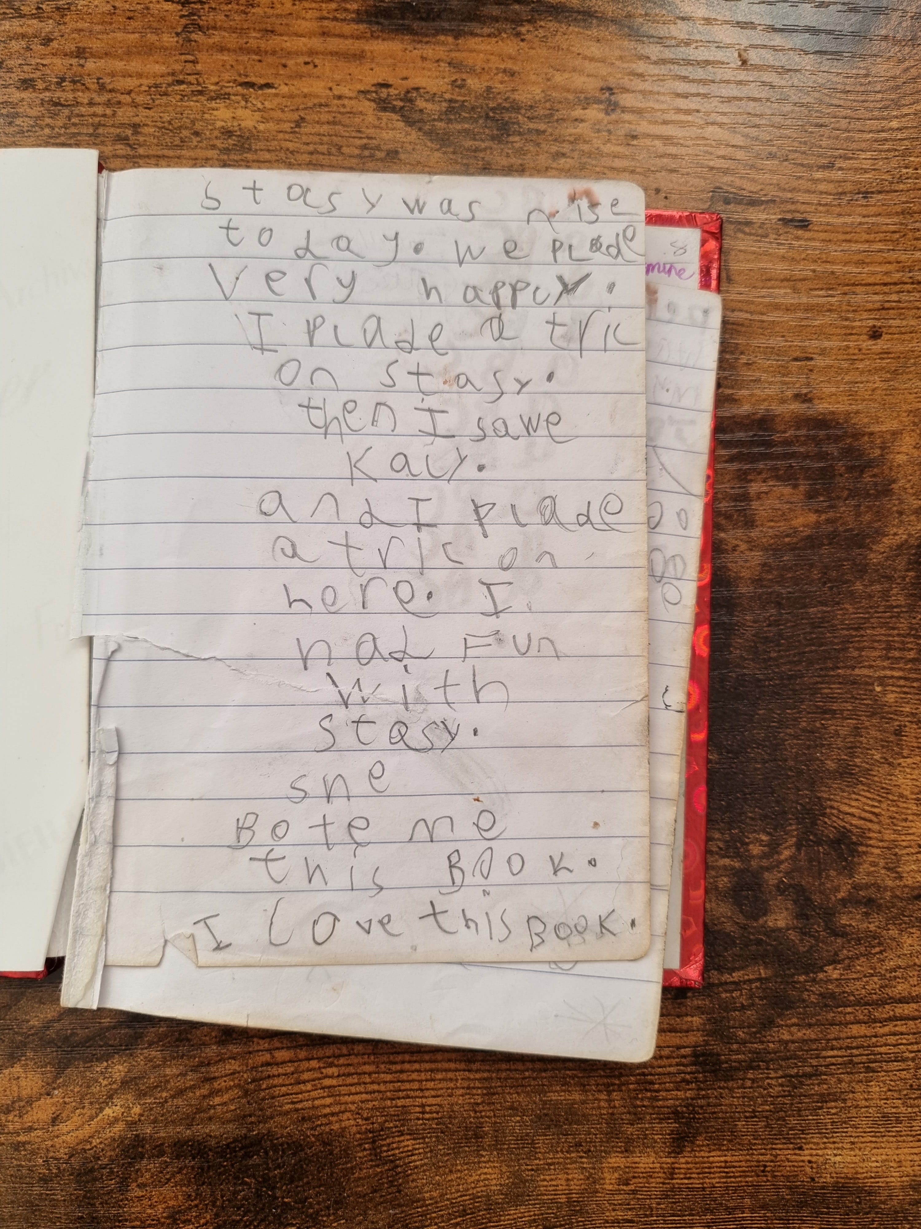 In the bag was a small red journal with lined pages. It had a shiny cover, like a Poundland gift bag. I don’t remember how I felt being given it, only that I reasoned myself out of my jealousy after that. How can I put it? The journal and I became inseparable. Overnight, it became my best friend, secret world, vault, sketchbook, spellbook, sleepover planner, and confidant. It took me a year to fill, my writing getting smaller and closer-knit as I reached its final pages. I mourned it when it was full, in the way that children mourn missing teddy bears. But I acquired another, and I kept going.
